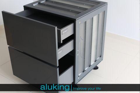 The standard measurement adopted in alukingmy.com for kitchen base cabinets are 600mm in depth and 860mm in height (include countertop).