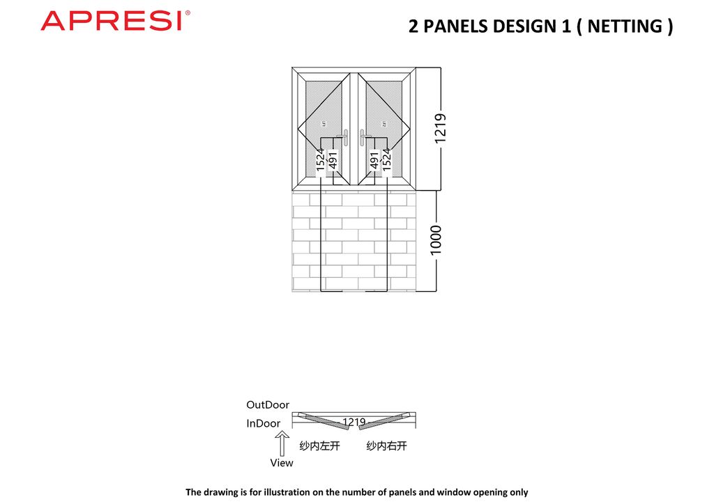 V Profile Casement Window 2 Panel (Width 3.5 - 4 FT)