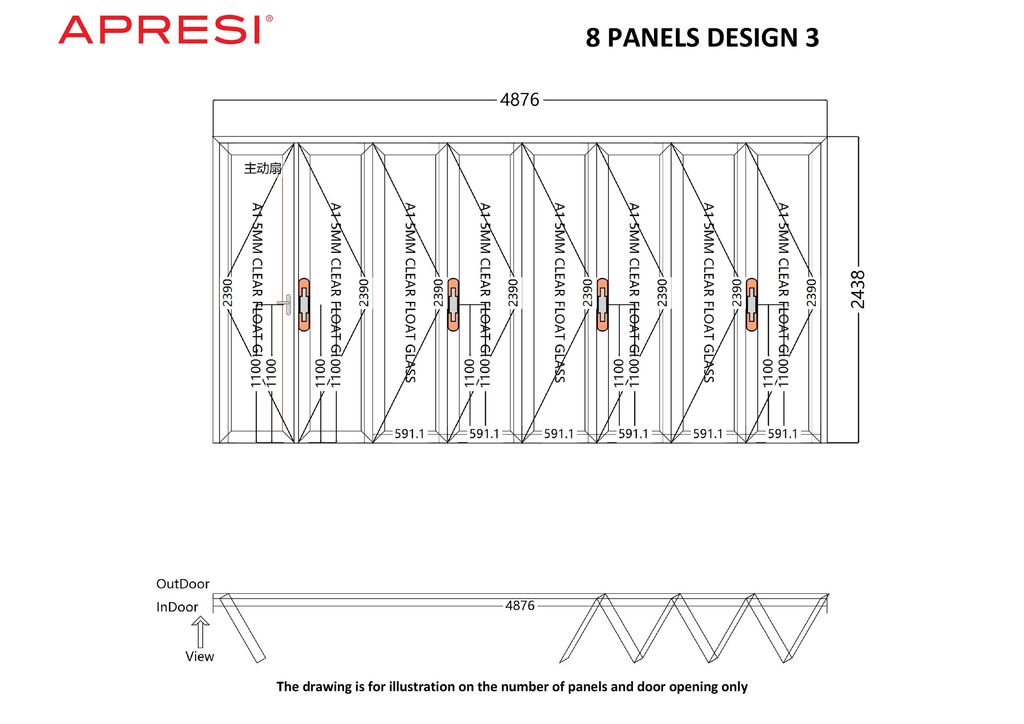 APRESI’s high performance folding doors with a maximum height of 11 feet and a maximum width of 2.5 feet/panel give you the flexibility to open up some or all of the door panels to desired scale, bringing the outdoors in while enjoying the comfort of being indoors.