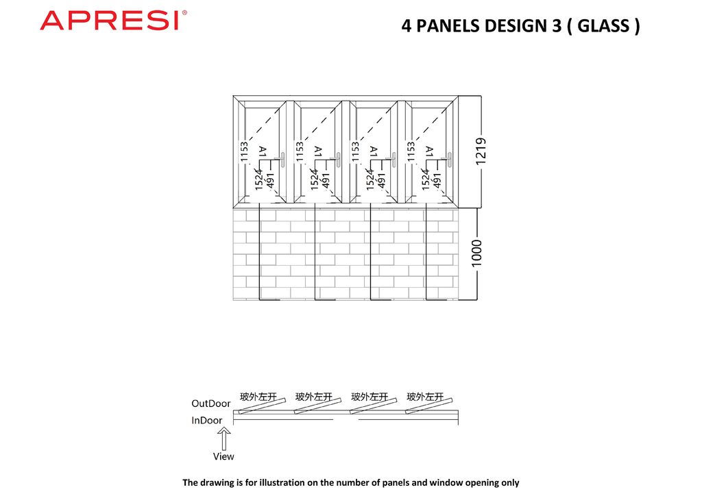 V Profile Casement Window 4 Panel (Width 8.5 - 9 FT)